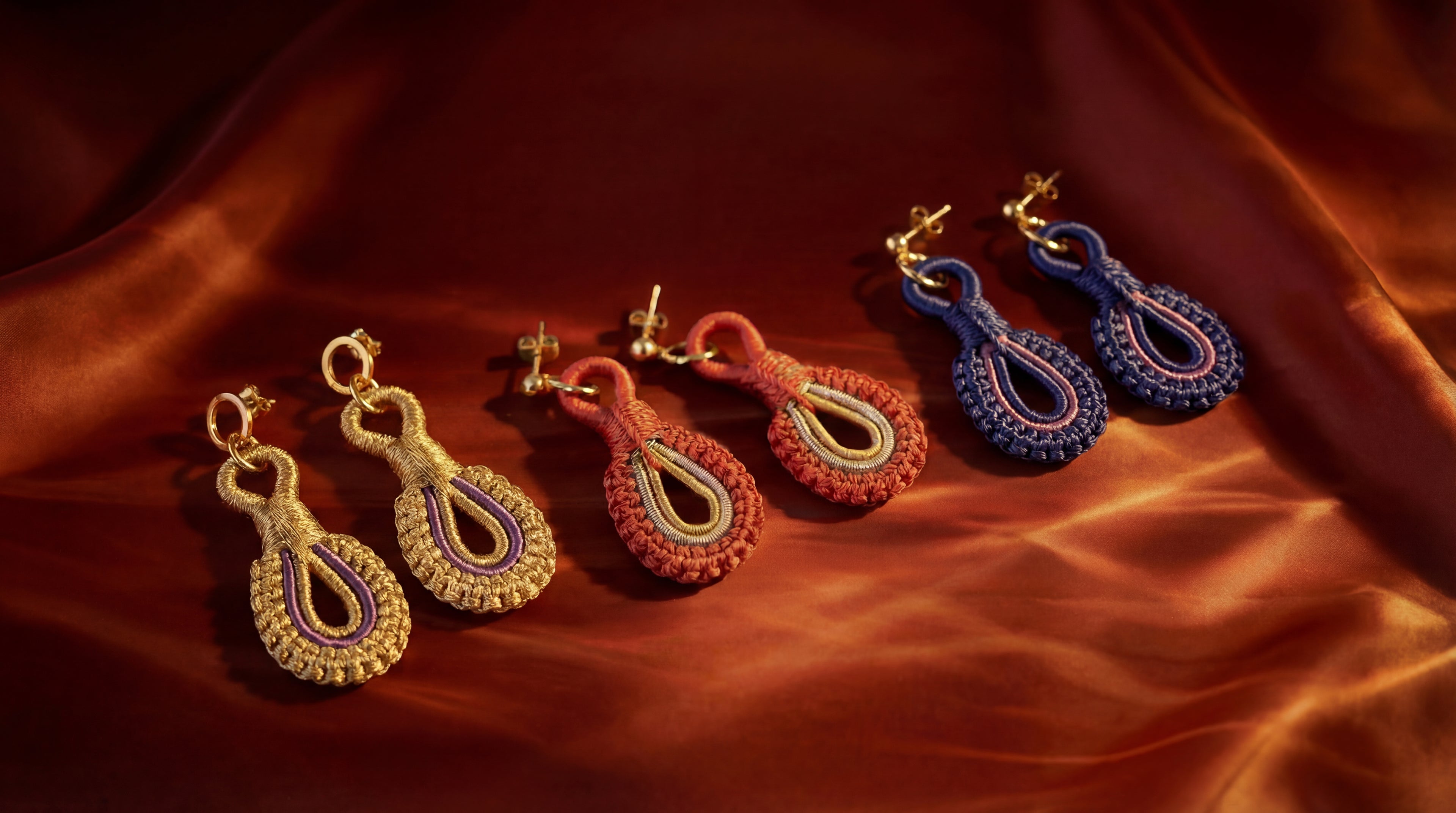 les boucles jelloul sont réalisées à la main à partir de fil de soie, selon une technique artisanale marocaine traditionnelle.