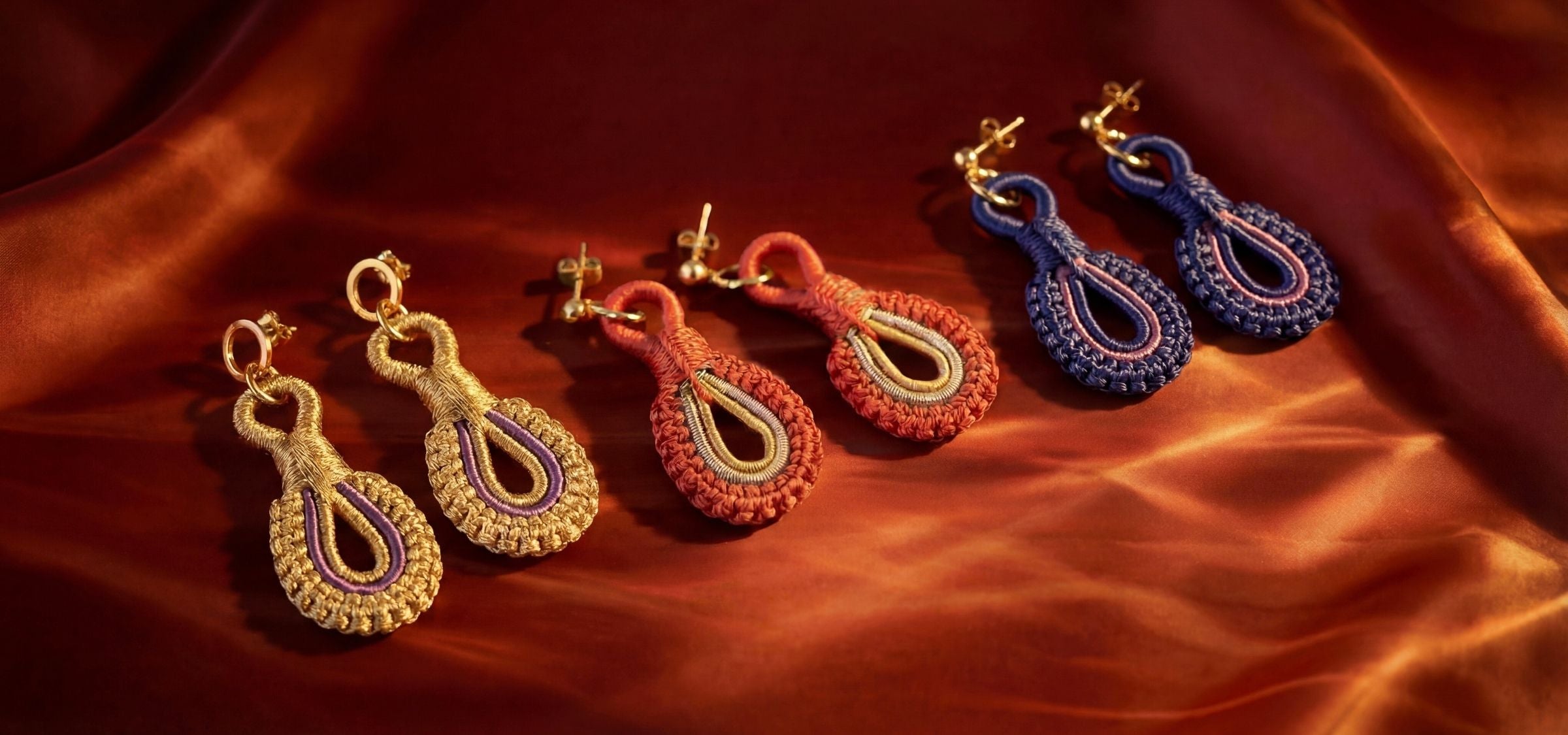 les boucles jelloul sont réalisées à la main à partir de fil de soie, selon une technique artisanale marocaine traditionnelle.